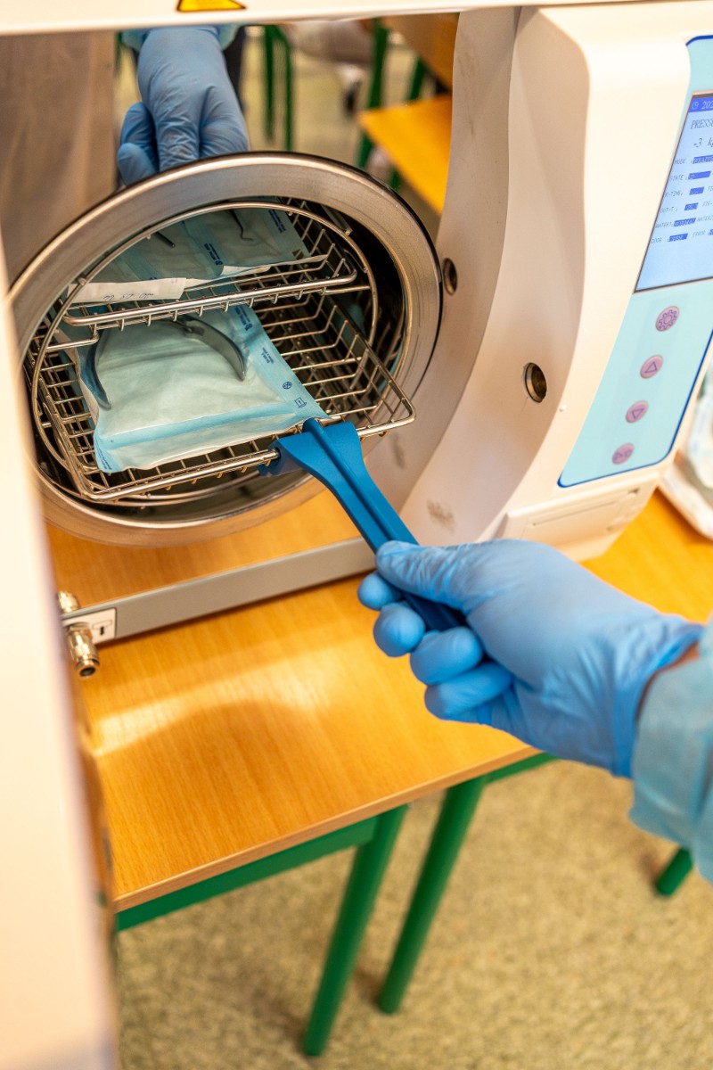 w sterylizatorniach lub pracowniach szkolnych.