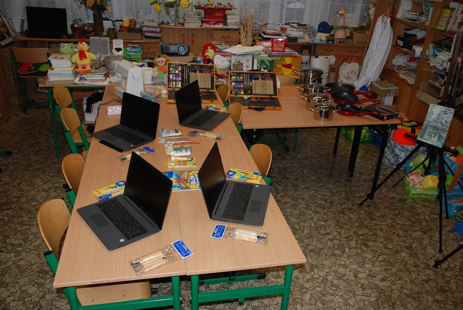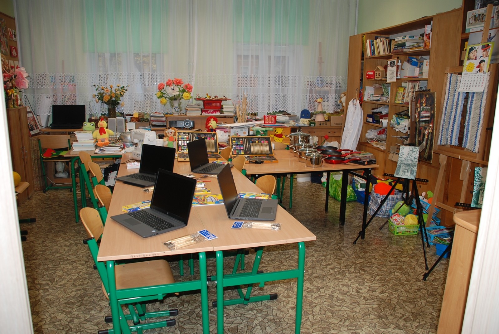Widok na pracownię do nauki terapii z przedmiotami do ćwiczeń