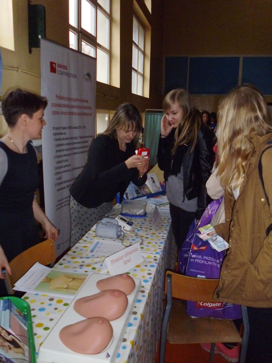 Dnia 27 marca obchodziliśmy II Wejherowski Dzień Promocji Zdrowego Stylu Życia. Cały dzień przyjmowaliśmy w szkole uczniów szkół wejherowskich zachęcając ich do przemyślenia prowadzonego stylu życia. O profilaktyce mówiły panie z Sanepidu, o odpowiednim relaksie nauczyciele fizjoterapii, a o zdrowej diecie pani dietetyk. Festyn zdrowotny odwiedziły też dzieci, które zachęcaliśmy do jedzenia owoców i warzyw, kontroli stomatologicznych czy zabaw rekreacyjno-wypoczynkowych. Spotkaliśmy się też z paniami z Uniwersytetu III wieku, które swoją zdrową postawą mogą być przykładem dla młodzieży.