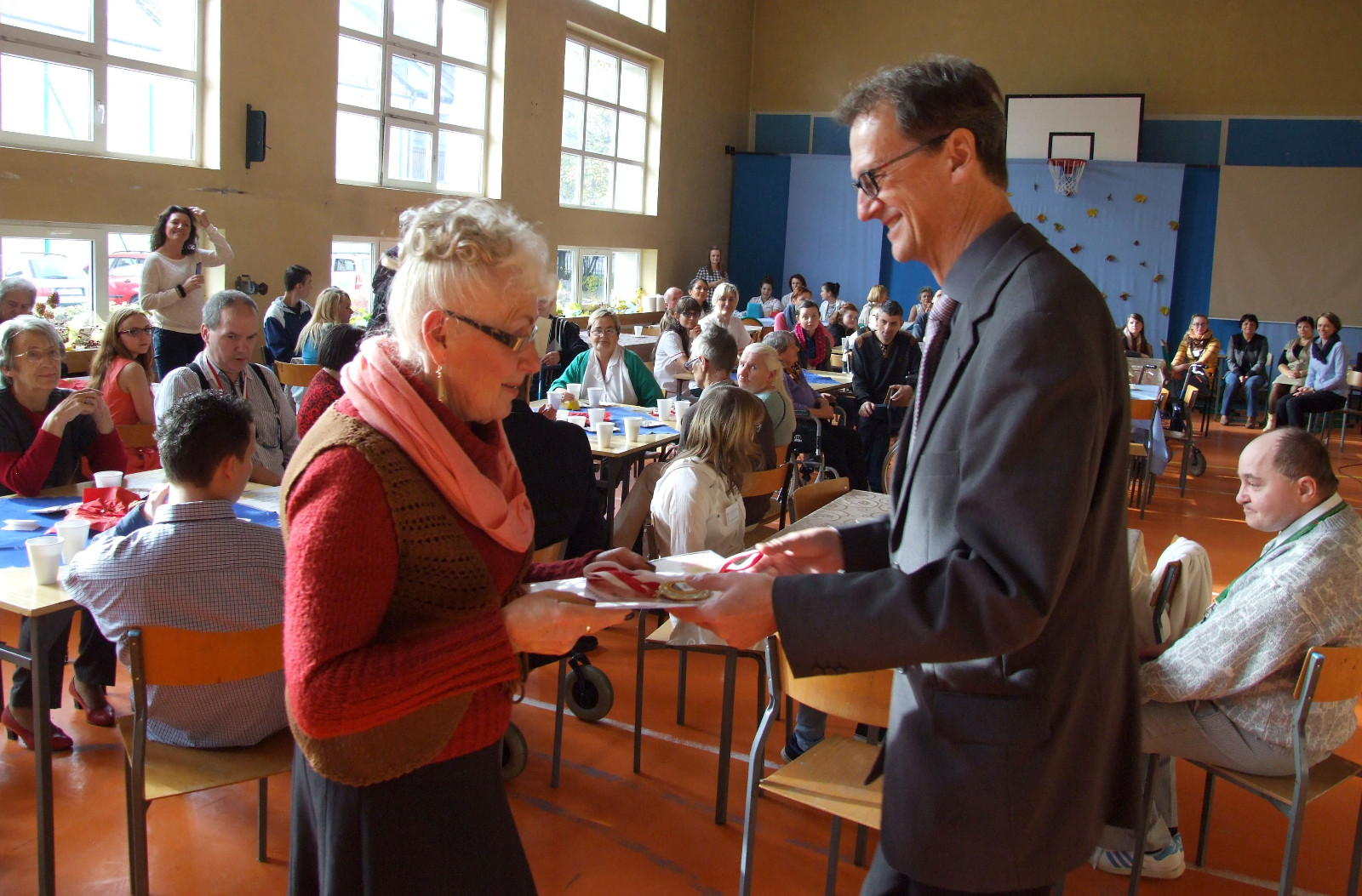 28 października z okazji Europejskiego Dnia Seniora zaprosiliśmy do naszej szkoły wyjątkowych gości - seniorów, podopiecznych Domów Pomocy Społecznej współpracujących z nami. Gości przywitał pan Wojciech Rybakowski, przedstawiciel władz powiatowych. Dla seniorów przygotowano szereg atrakcji: gry, konkursy, masaże, tańce oraz słodki poczęstunek. Było to bardzo serdeczne spotkanie i cieszymy się, iż ta uroczystość na stale zapisała się w pracę szkoły.