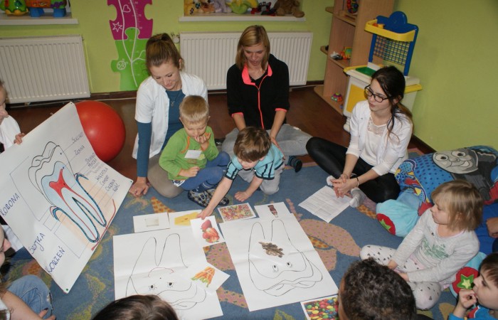 7 grudnia 2015 r. słuchaczki II roku kierunku Higienistka Stomatologiczna, pod kierunkiem p. Beaty Świś, przeprowadziły zajęcia z zakresu promocji zdrowia w punkcie przedszkolnym "Kajtek" w Wejherowie. Dzieci bardzo aktywnie odpowiadały na pytania dotyczące higieny jamy ustnej i uczyły się jak prawidłowo szczotkować zęby. Na zakończenie każdy z uczestników otrzymał dyplom. Zajęcia przyniosły dużo radości i pożytku zarówno słuchaczkom jak i dzieciom. Serdecznie dziękujemy :)