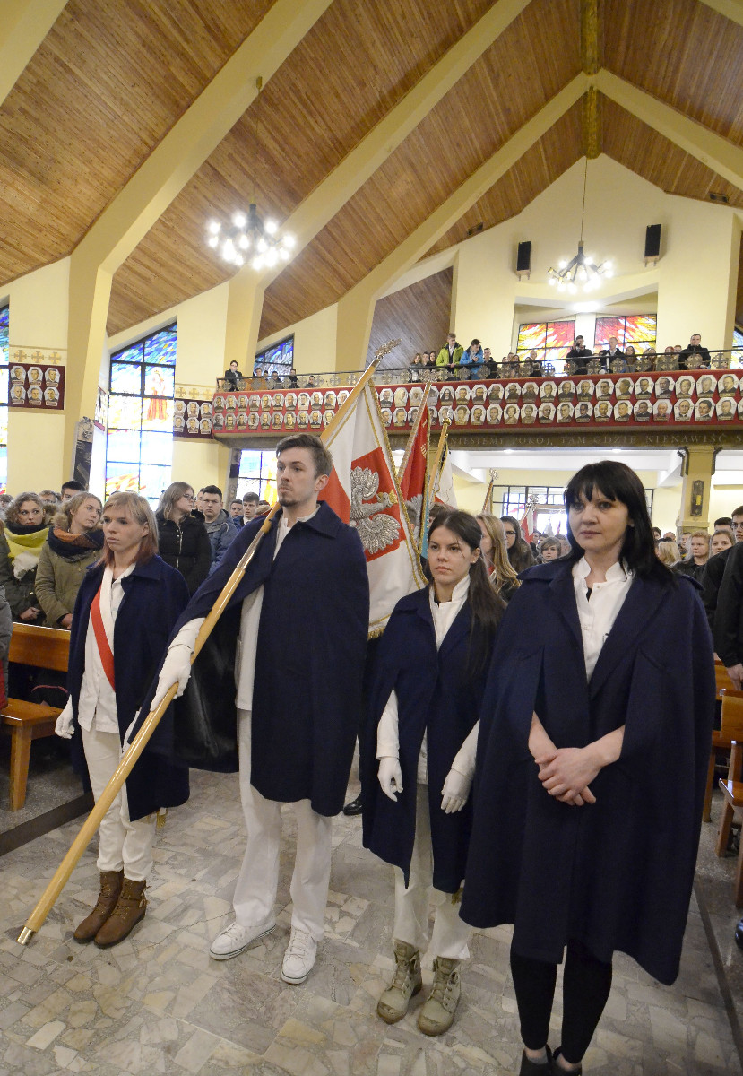1 marca 2016 r. wzięliśmy udział w uroczystościach Narodowego Dnia Pamięci Żołnierzy Wyklętych. Obchody rozpoczęły się od uroczystej mszy św. w kościele pw. Chrystusa Króla i Bł. Alicji Kotowskiej. Po nabożeństwie odbył się przemarsz i złożenie hołdu Żołnierzom Niezłomnym przy Pomniku ofiar walk i męczeństwa zniewolonej Ojczyzny w latach 1939-1989 „Brama Piaśnicka”.